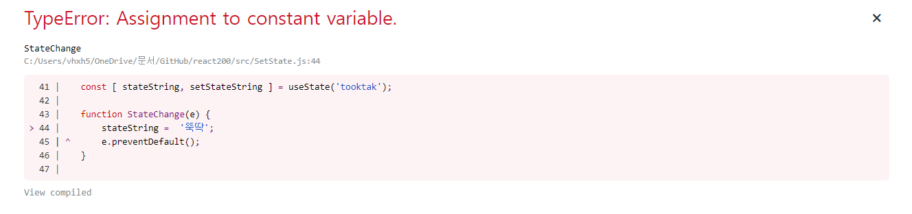 stateString = '뚝딱'; // 여기서 에러 발생