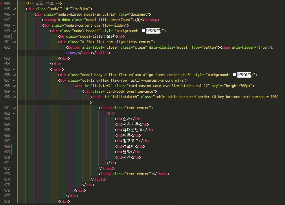 부트스트랩 사용하여 코드가 복잡해 보일 수 있으나, 주요 핵심 태그들만 봐주시면 됩니다.