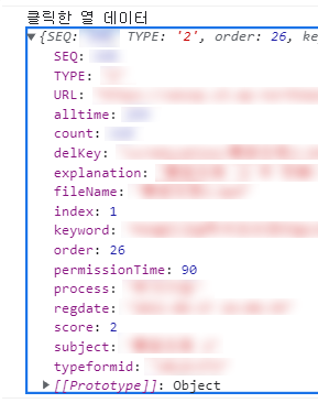 이렇게 되면 모달에서 rowData.SEQ 이런식으로 데이터를 사용할 수 있는 거죠.