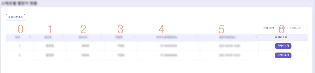 3. exportOptions 안에 적힌 coumns의 배열 번호는 엑셀로 내보낼 열의 번호입니다.