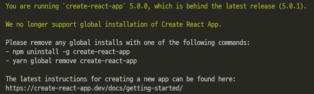 $ npm uninstall -g create-react-app (혹은 yarn global reamove create-react-app)
