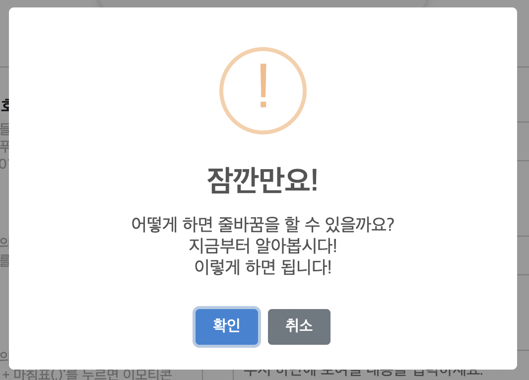 sweetalert 안내 문구에 줄바꿈 넣는 방법에 대해 공유하겠습니다.